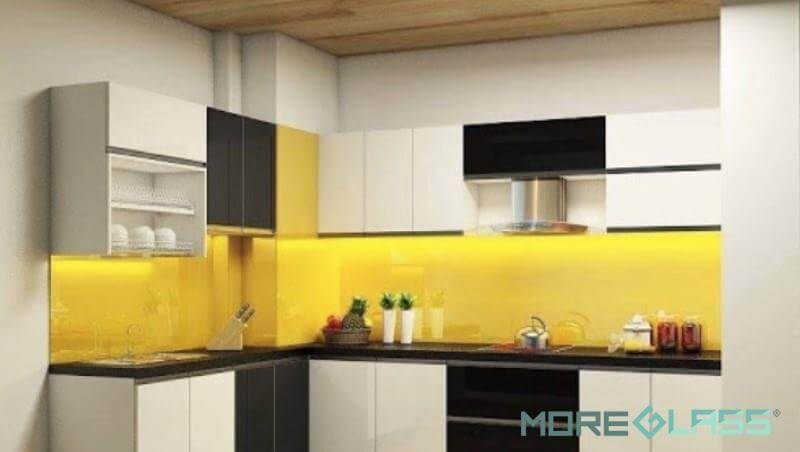 Với mẫu kính ốp bếp màu vàng tươi tắn này sẽ giúp phòng bếp của bạn trở nên rực rỡ và tràn đầy sức sống