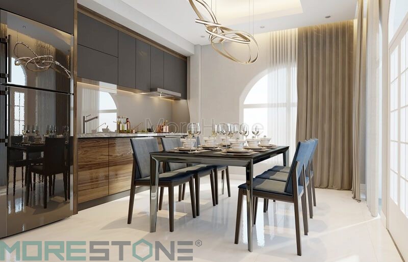 - Mặc dù hầu hết các loại đá đều có thể được sử dụng cho sàn nhà bếp, nhưng điều quan trọng là phải chọn loại có khả năng chống trơn trượt và đủ bền để chịu được lượng người qua lại đông đúc.