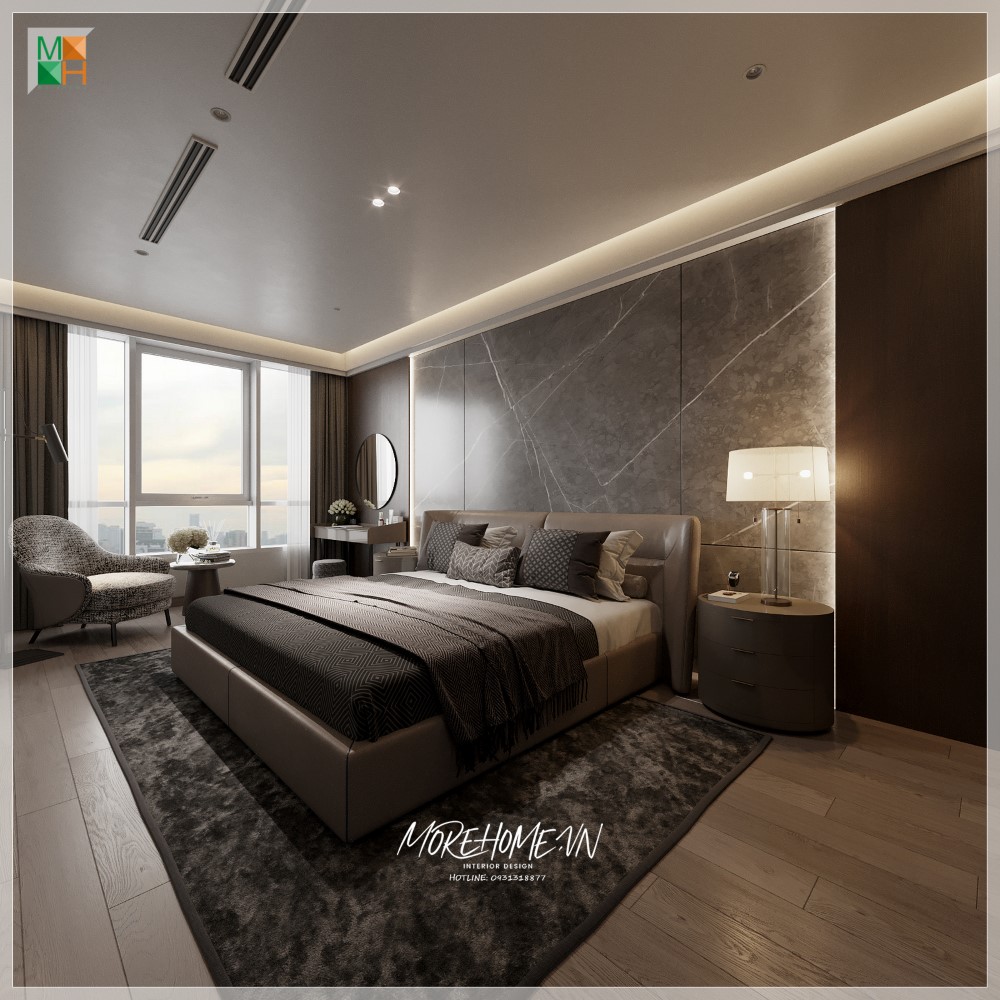 Thiết kế giường ngủ phòng Master phong cách hiện đại, đơn giản vô cùng tiện nghi